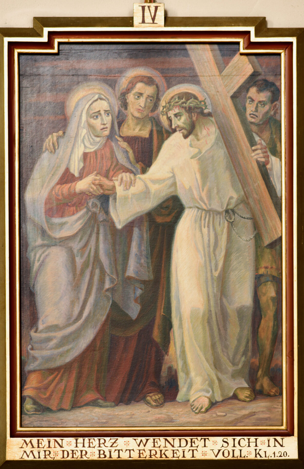 Dies geht einher mit rassistischen Unterstellungen gegenüber Jüdinnen und Juden wie Hinterlistigkeit, Verschlagenheit, Triebhaftigkeit, Unbelehrbarkeit und dem vermeintlichen Wirken im Verborgenen. Solche Merkmale sind bis heute im zeitgenössischen Antisemitismus präsent und werden besonders deutlich, wenn sie im direkten Vergleich zu tatsächlich oder vermeintlich nicht-jüdischen Protagonisten auf den Kreuzwegbildern dargestellt werden. Besonders auffällig ist dabei, dass auch die Person, die auf der Kreuzwegstation 11 die Kreuzannagelung durchführt, genau diese Merkmale trägt. Eine weitere in dieser Szene aktive Person schaut zu als jüdisch markierten Würdenträgern im Hintergrund und es wirkt, als würde sie von diesen Anweisungen erhalten. Römer sind in dieser Szene nicht zu sehen. Ganz offensichtlich wird auf den Bildern also der Mythos des Gottesmordes durch „die Juden“ reproduziert. Laut Johannes 19,23 waren es jedoch eindeutig römische Soldaten, die auf Anweisung des römischen Stadthalters Pontius Pilatus die Kreuzigung Jesu vollzogen. Auch außerbiblische Quellen bestätigen, dass allein die Römer das Recht hatten, die Todesstrafe zu verhängen.2 Für Jüdinnen:Juden galt die Kreuzigung dagegen als Zeichen des Verfluchtseins durch Gott.3